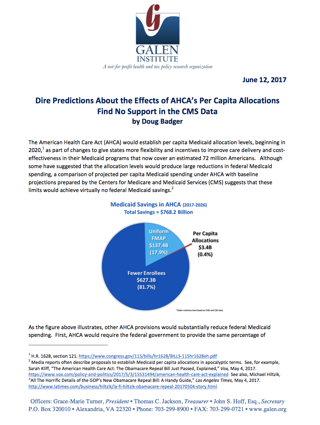 Dire Predictions About the Effects of AHCA’s Per Capita Allocations Find No Support in the CMS Data by Doug Badger The American Health Care Act (AHCA) would establish per capita Medicaid allocation levels, beginning in 2020,[i] as part of changes to give states more flexibility and incentives to improve care delivery and cost-effectiveness in their Medicaid programs that now cover … [Read more...] about Doug Badger – Medicaid: Per Capita Analysis